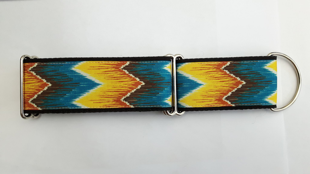 Introducing our 50mm wide handmade Greyhound Martingale collar, designed to ensure a comfortable and secure fit for your beloved pet. Crafted with high-quality materials, this collar is perfect for Greyhounds and other breeds with narrow heads. Our Martingale collar helps prevent your pet from slipping out of their collar, while also providing gentle control for training purposes. The adjustable sizing (33cm - 48cm) ensures a perfect fit for your furry friend and the stylish design will make them the envy of the dog park. Handmade with love, this collar is the perfect combination of functionality and style. Order now and give your pup the gift of comfort and style.