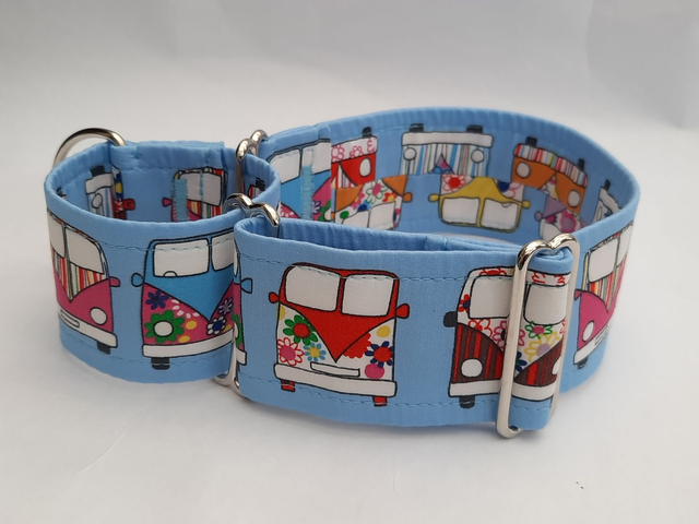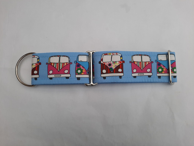 Introducing our 50mm wide handmade Greyhound Martingale collar, designed to ensure a comfortable and secure fit for your beloved pet. Crafted with high-quality materials, this collar is perfect for Greyhounds and other breeds with narrow heads. Our Martingale collar helps prevent your pet from slipping out of their collar, while also providing gentle control for training purposes. The adjustable sizing (33cm - 48cm) ensures a perfect fit for your furry friend and the stylish design will make them the envy of the dog park. Handmade with love, this collar is the perfect combination of functionality and style. Order now and give your pup the gift of comfort and style.