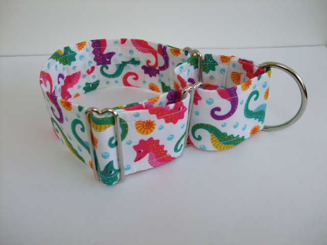 Introducing our 50mm wide handmade Greyhound Martingale collar, designed to ensure a comfortable and secure fit for your beloved pet. Crafted with high-quality materials, this collar is perfect for Greyhounds and other breeds with narrow heads. Our Martingale collar helps prevent your pet from slipping out of their collar, while also providing gentle control for training purposes. The adjustable sizing (33cm - 48cm) ensures a perfect fit for your furry friend and the stylish design will make them the envy of the dog park. Handmade with love, this collar is the perfect combination of functionality and style. Order now and give your pup the gift of comfort and style.