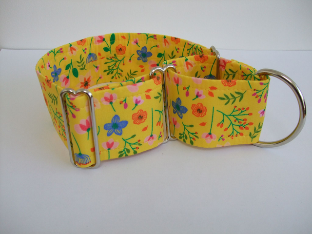 Introducing our 50mm wide handmade Greyhound Martingale collar, designed to ensure a comfortable and secure fit for your beloved pet. Crafted with high-quality materials, this collar is perfect for Greyhounds and other breeds with narrow heads. Our Martingale collar helps prevent your pet from slipping out of their collar, while also providing gentle control for training purposes. The adjustable sizing (33cm - 48cm) ensures a perfect fit for your furry friend and the stylish design will make them the envy of the dog park. Handmade with love, this collar is the perfect combination of functionality and style. Order now and give your pup the gift of comfort and style.